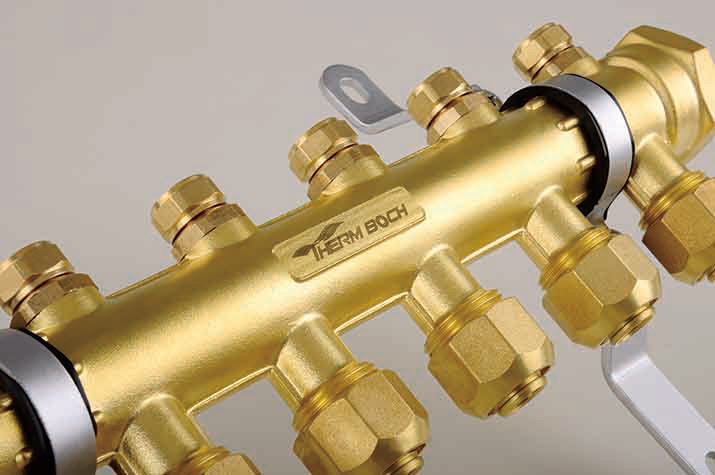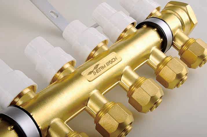 ◎可手动调节流量,如配置相应的电热执行器和房间温控器,可达到根据房间温度控制系统中每个支路热水的开启或关闭的效果。