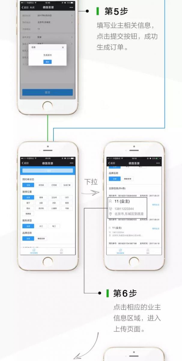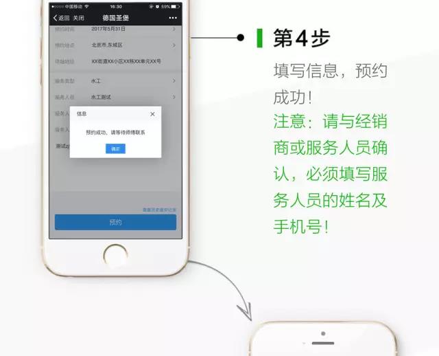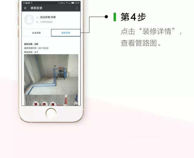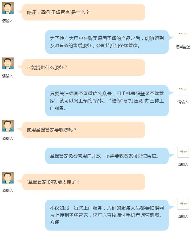 用手机号码注册“圣堡管家”,就可以网上预约“上门安装“、“上门维修”、“上门打压测试”、“上门鉴别真伪”。不仅如此,每次上门服务,我们服务人员都会拍摄管路照片上传到“圣堡管家”,用户只需要填写业主手机号就可以轻松查询管路图。保用50年高大尚的售后服务。